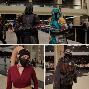 @jajacosplay and @ginozacostuming Mandalorian samurai @widgetocosplay an original Twi'lek Star Wars mud trooper (anonymous)
