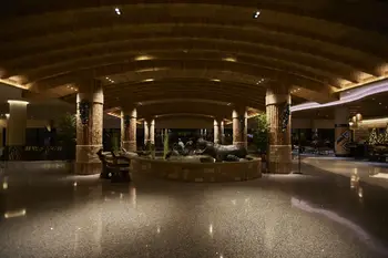 The Kalahari resort in Round Rock, Texas is an impressive facility. It boasts the second largest indoor water park in America, 975 hotel rooms, a large and well-appointed lobby, multiple restaurants, terrazzo floors throughout, and a 200,000 sq ft convention center. By the numbers it’s not actually that different in size or scale than their other resorts, it’s just done better.