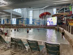 The water park is technically only 3,000 sq ft larger than the next largest one in Pennsylvania. It’s laid out well with a seemingly smaller wave pool, which isn’t a bad thing. There’s ample seating and the pathways are easy to navigate. There are plenty of slides, both individual and raft types. There are kids areas and the wave surfer thing. The adult grotto is particularly well-themed with moody lighting and faux rocks surrounding the swim up bar. It connects to an outside hot tub area and outdoor pool which was open. This is separate from another large outdoor pool area which was closed.