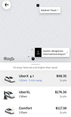 The Austin-Bergstrom International Airport is 28 miles away, which can make for an expensive Uber ride. There were estimates of around $60, but on the day the actual cost for a Lyft ended up being $92 😲. The airport is large enough to host many flights at relatively affordable prices. Just be sure to buy in advance.